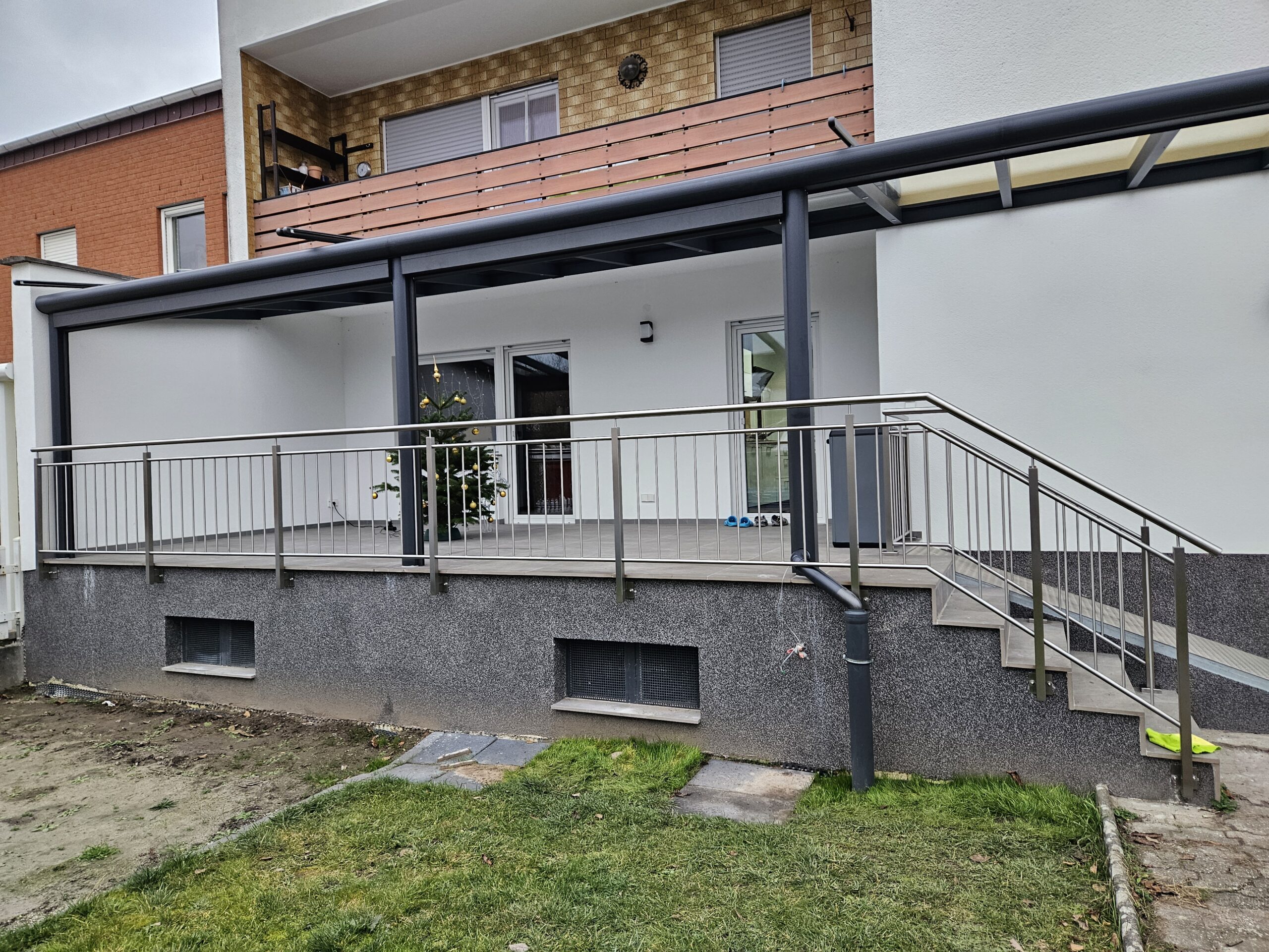 Unsere Edelstahl-Balkongeländer sind elegant, langlebig und stabil. Pfosten, Handläufe und Füllungen werden verschweißt. Edelstahl ist extrem widerstandsfähig gegen Rost, Korrosion und Witterungseinflüsse. Ihre Geländer und Anlagen bleiben jahrzehntelang schön und pflegeleicht. Individuelle Designs und Größen passen sich jedem Haus an – freistehend oder als Anbau an der Fassade, ideal zum Entspannen, Grillen oder Genießen der Aussicht.